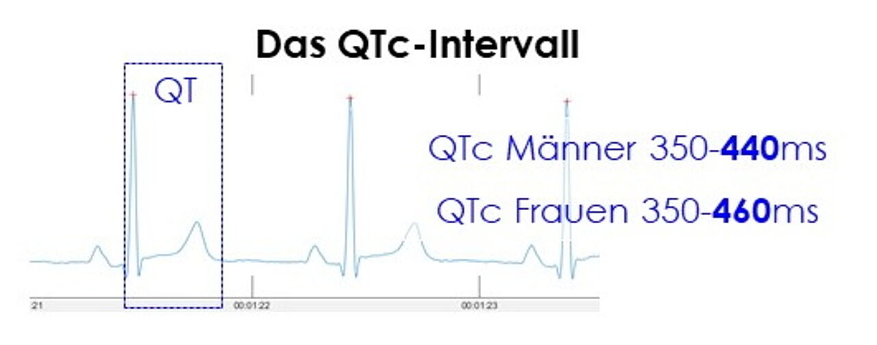Das QTc-Intervall ist eine wichtige Messgröße in der Elektrokardiographie (EKG), die Aufschluss über die elektrische Erregung und Erholungsphase der Herzmuskulatur gibt. Dieses Intervall entspricht der Zeit von Beginn der Q-Welle bis zum Ende der T-Welle im EKG, die die gesamte Dauer der ventrikulären Depolarisation und Repolarisation widerspiegelt. Um die Vergleichbarkeit zwischen Patienten mit unterschiedlichen Herzfrequenzen zu gewährleisten, wird das QT-Intervall für die Herzfrequenz korrigiert, was als QTc-Intervall bekannt ist.